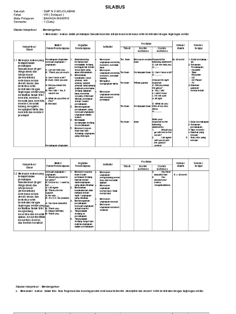 Dengan mengikuti silabus bahasa Inggris kelas 8 dengan baik, siswa diharapkan dapat mencapai kompetensi berbahasa Inggris yang sesuai dengan standar nasional dan internasional.